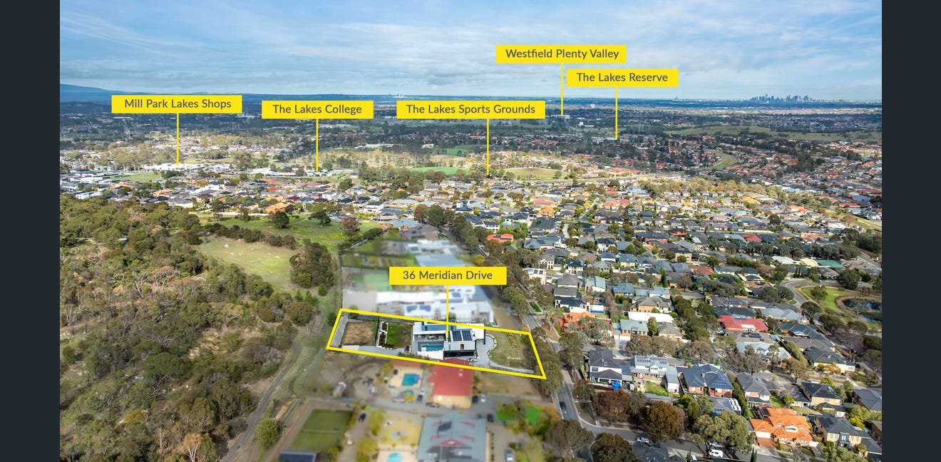 36 Meridian Drive, South Morang, Vic 3752 has a land size of 3,742 m². It is a house with 4 bedrooms, 5 bathrooms, and 4 parking spaces. It was sold in 2019 for $2,345,000 by Barry Plant – North Eastern Group. Median property prices in South Morang over the last year range from $772,500 for houses to $508,000 for units.